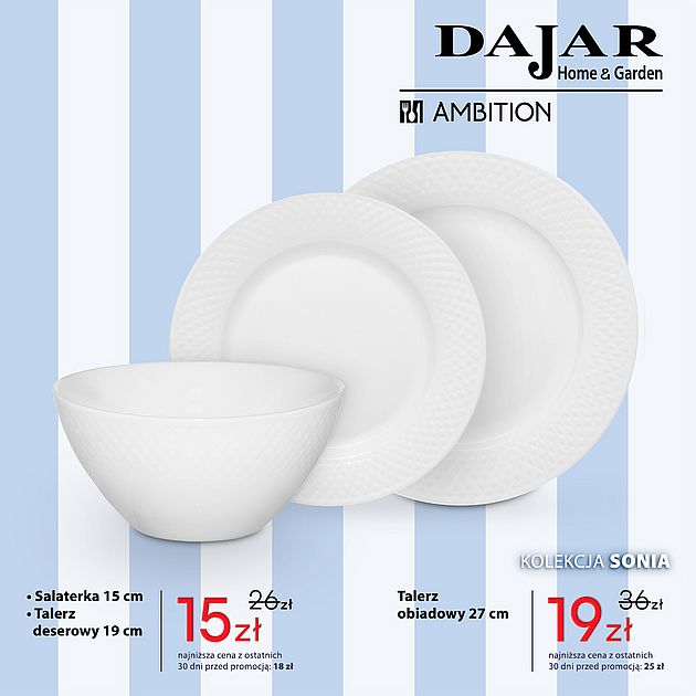 DAJAR Home&Garden oferuje szeroki wybór artykułów wyposażenia kuchni, jadalni i salonu, w przystępnych cenach. W naszych sklepach oferujemy: nowoczesną i oryginalną zastawę stołową francuskiej marki Luminarc, szeroki asortyment szkła marki Krosno oraz Pasabahce, doskonałej jakości akcesoria kuchenne marki Ambition, poręczne i trwałe noże oraz akcesoria marki Fiskars, unikatowe wyposażenie do kuchni i domu marki Practic, naczynia żaroodporne o wysokiej wytrzymałości marki Pyrex, a także dzbanki i butelki filtrujące wodę marki Aquaphor.