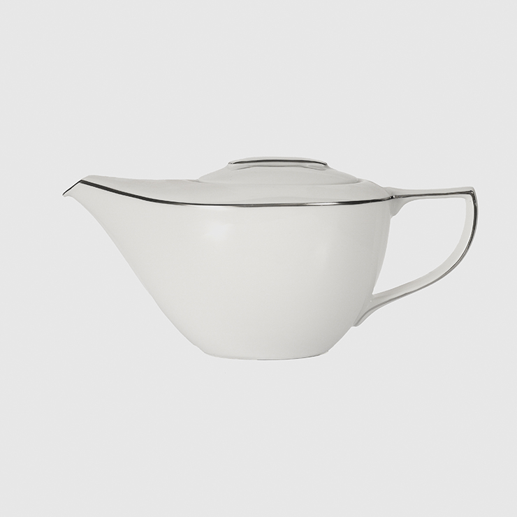 Porcelanowy czajnik na herbatę. Pojemność 1l. Kolor biały i srebrny.