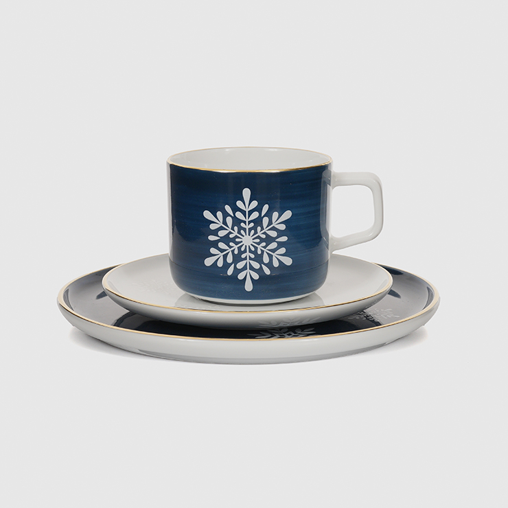 Zestaw zawiera: filiżankę ze spodkiem oraz talerzyk śniadaniowy.