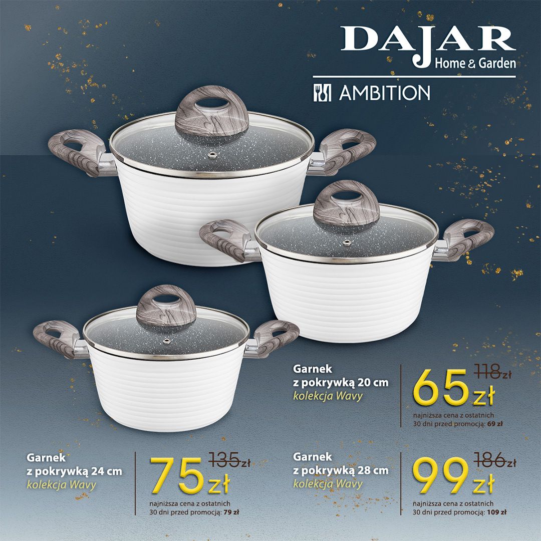 Garnek 20cm: było 118zł, jest 65zł. Garnek 24cm: było 135zł, jest 75zł. Garnek 28cm: było 186zł, jest 99zł.