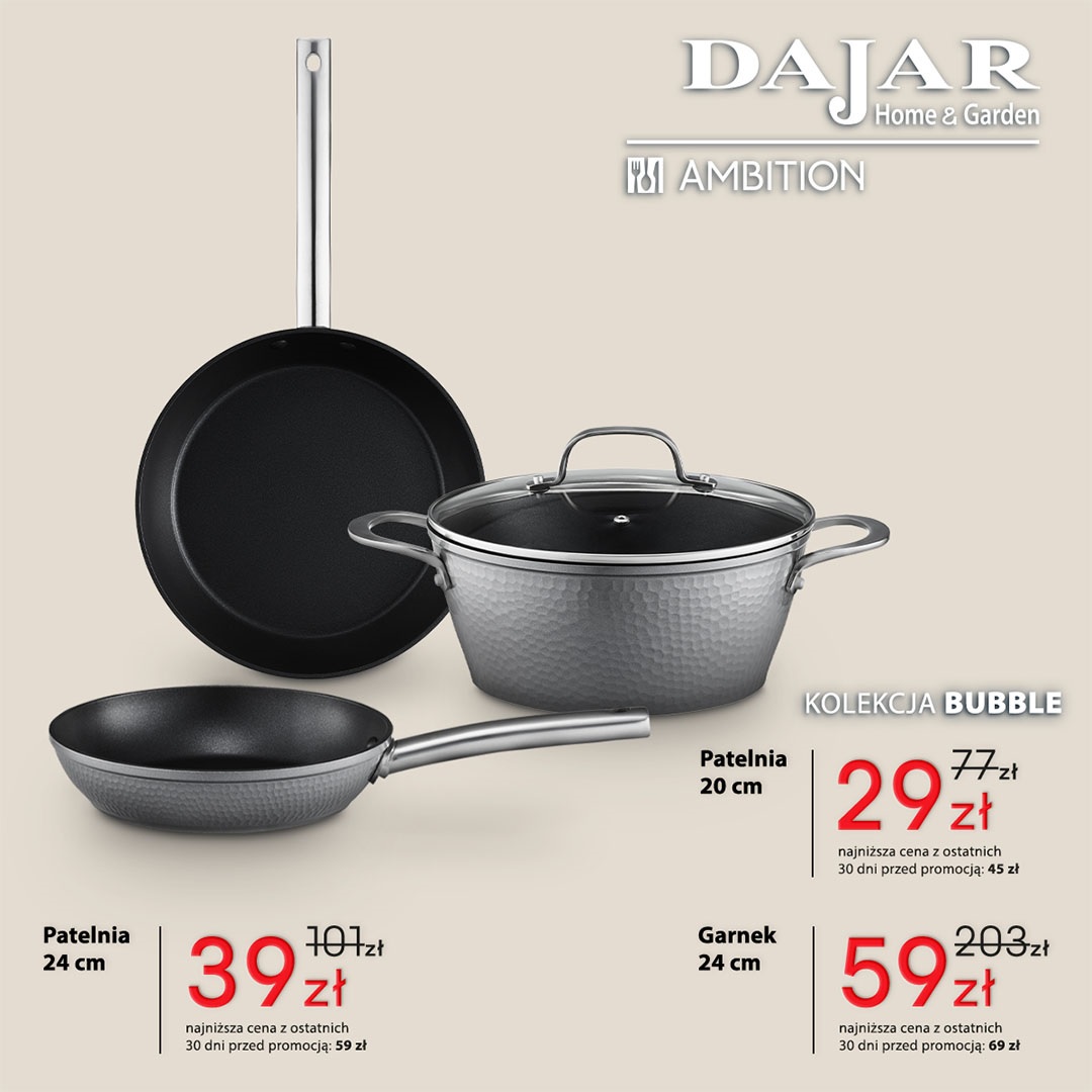 Patelnia 24 cm: było 101 zł, jest 39 zł. Patelnia 20 cm: było 77 zł, jest 29 zł. Garnek 24 cm: było 203 zł, jest 59 zł.