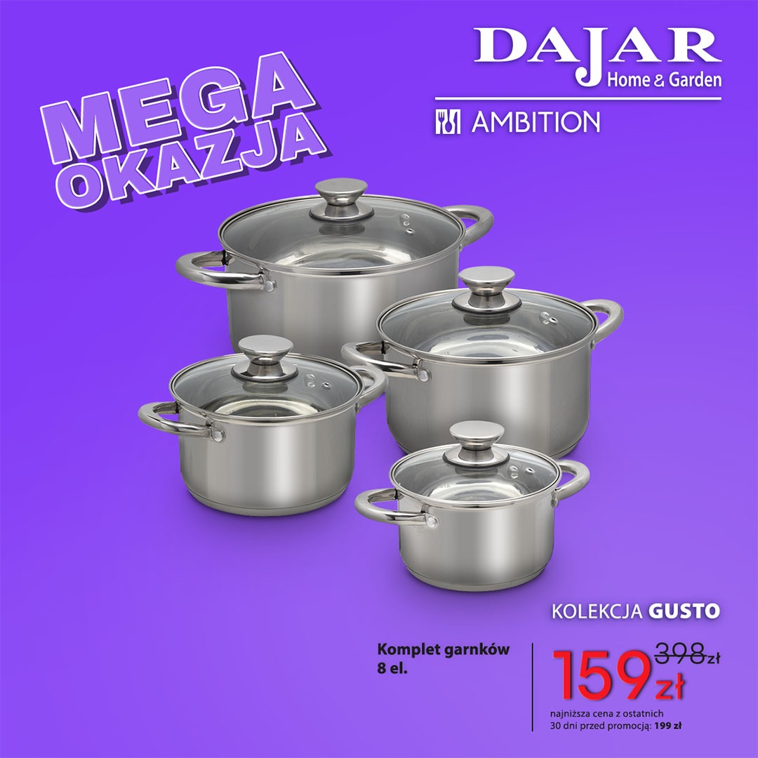 Komplet garnków 8 el.: było 398 zł, jest 159 zł.
