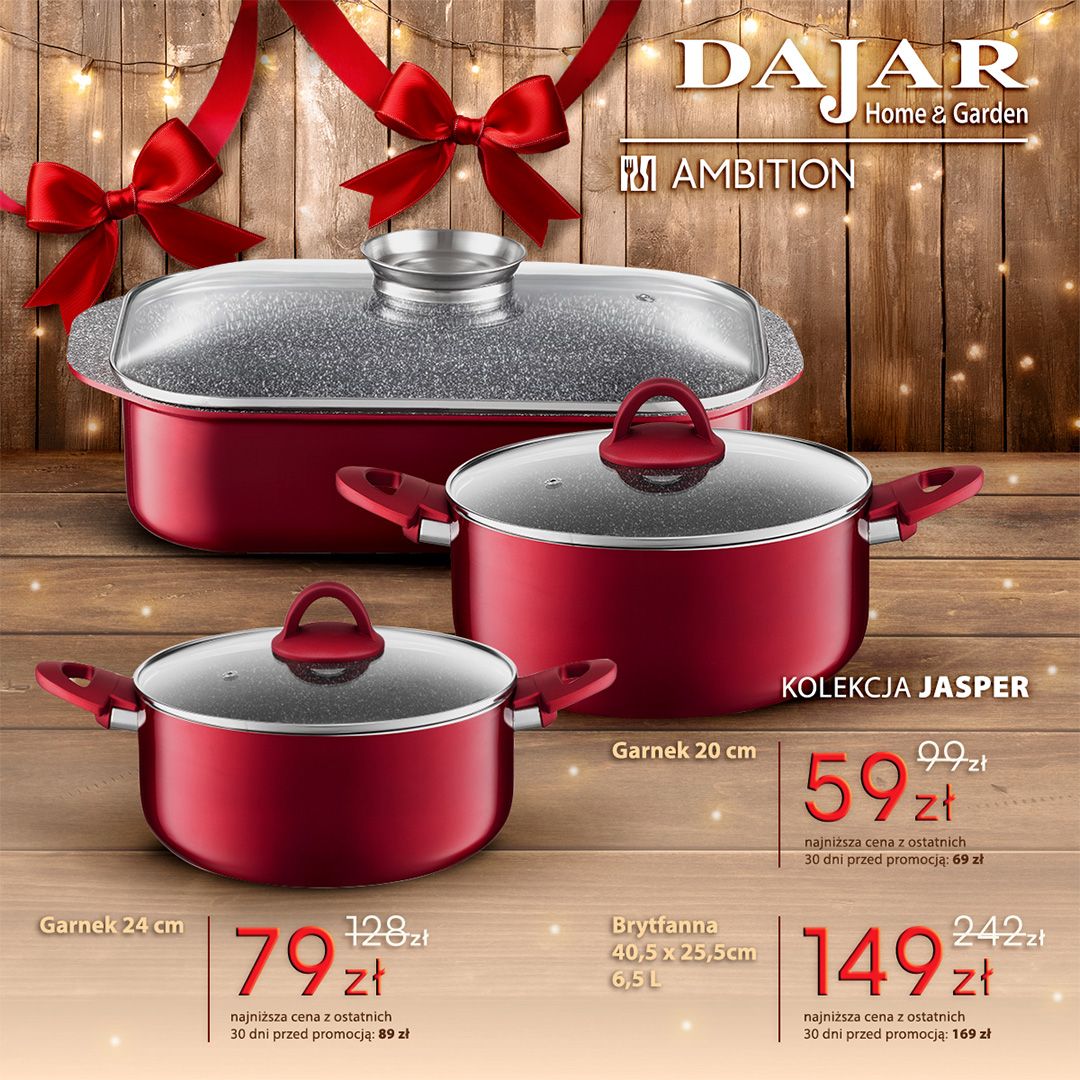 Garnek 24cm: było 128zł, jest 79zł; Garnek 20cm: było 99zł, jest 59zł; Brytfanna 40,5 x 25,5cm 6,5L: było 242zł, jest 149zł.