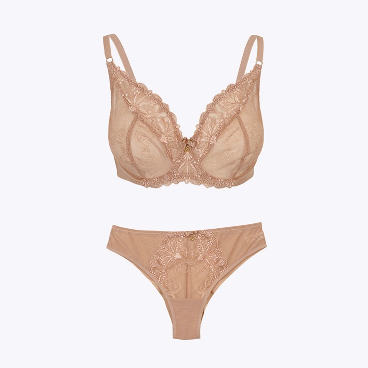 Komplet w kolorze cappucino. Biustonosz: było 269 zł, jest 188 zł. Tangi: było 129 zł, jest 90 zł.