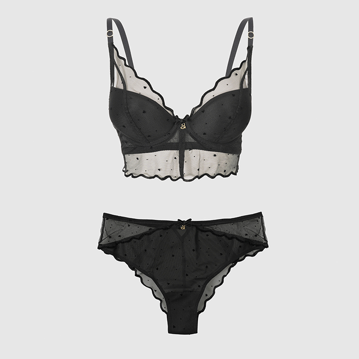 Czarny komplet bielizny. Biustonosz: było 319 zł, jest 223 zł. Tangi: było 149 zł, jest 104 zł.