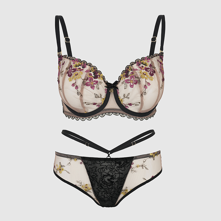 Zestaw w kolorze czarnym. Biustonosz: 299 zł, jest 209 zł. Tangi: było 169 zł, jest 118 zł.