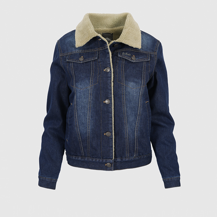 Wnętrze wyszyte ciepłym kożuchem. Kolor ciemny jeans.