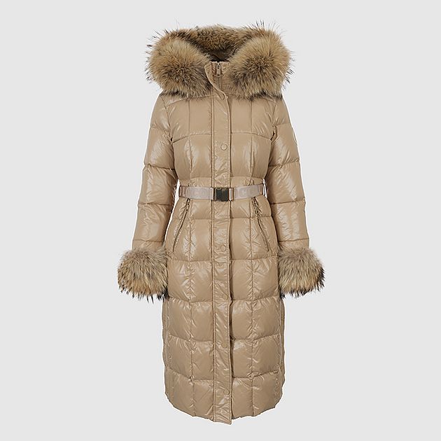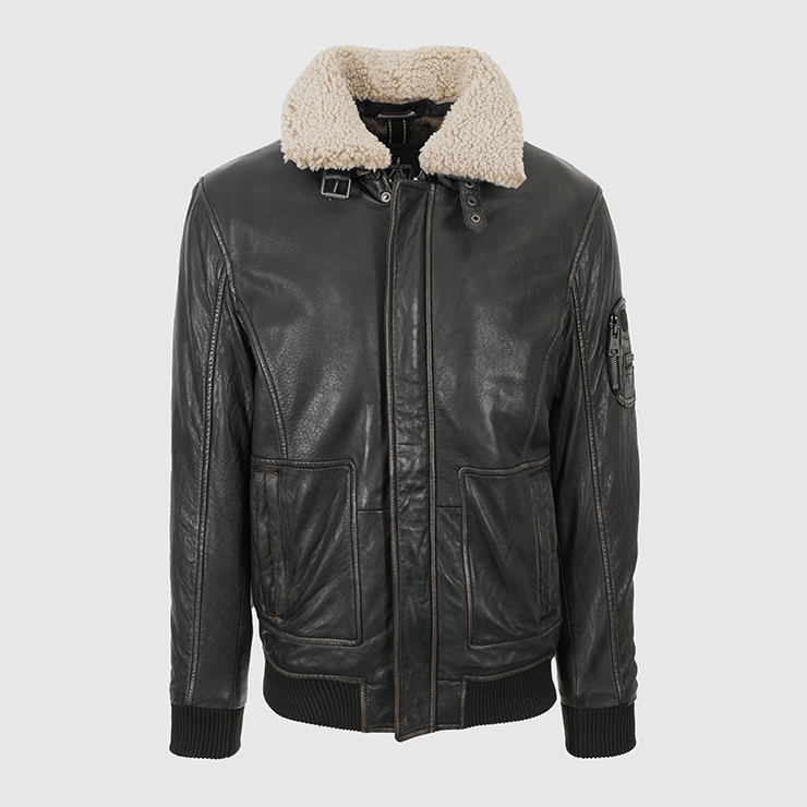 Skóra naturalna. Odpinany futrzany kołnierz. Kolor brązowy.