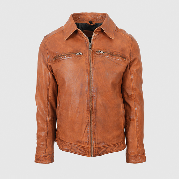 Kurtka ze skóry jagnięcej. Kolor pomarańczowy.