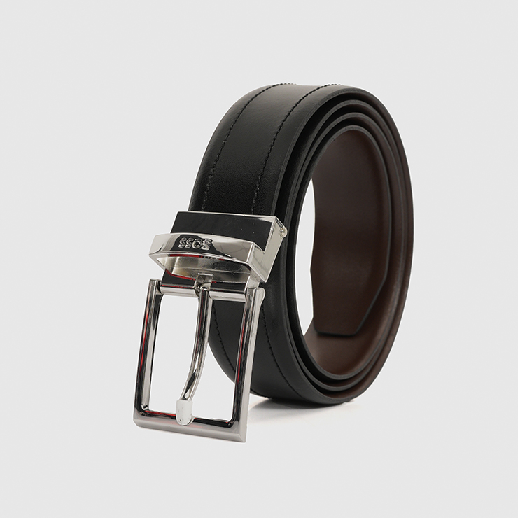 Dwustronny, wykonany z naturalnej skóry. Kolor czarny/brązowy.
