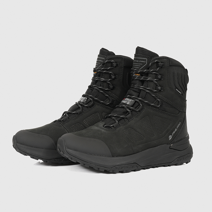 Buty ocieplane Alpine Pro Nire to solidne obuwie terenowe. Wysoka cholewka ze skóry nubakowej i Cordury. We wnętrzu zastosowano ocieplinę Thinsulate. O suchość stóp dba membrana PTX. Kolor czarny.
