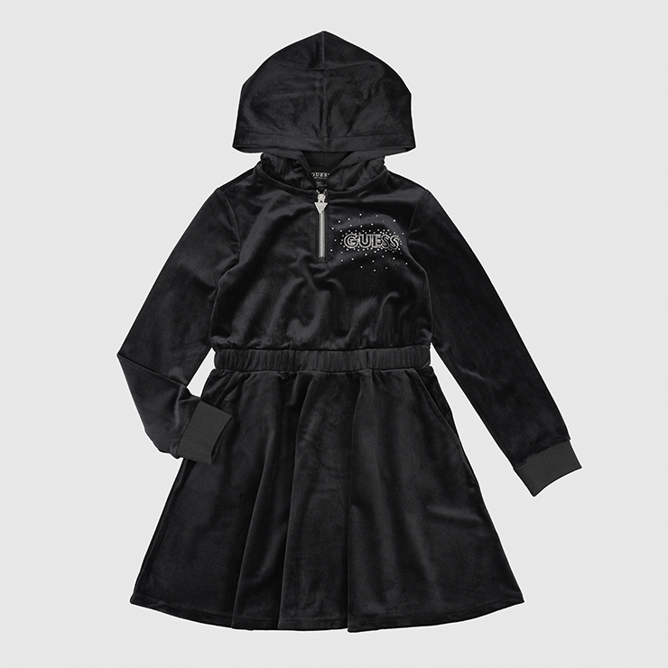 Sukienka welurowa. 95% poliester (zewnątrz), 95% bawełna (wewnątrz). Kolor czarny.